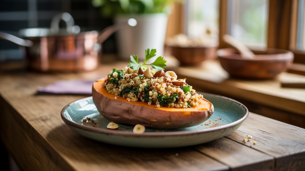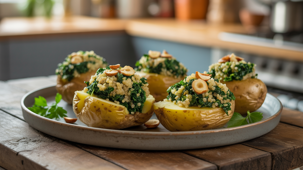Batatas rellenas de quinoa con col rizada y avellanas – receta saludable y sabrosa