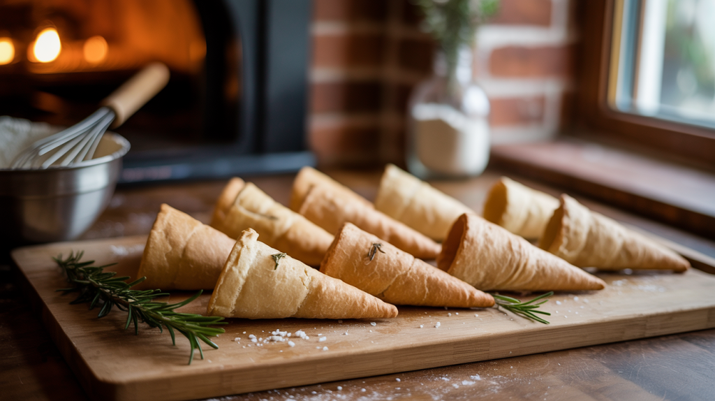 pan casero, receta de pan fácil, conos rellenos, pan crujiente, aperitivos originales, recetas con pan, masa para pan, pan artesanal, ideas para rellenar conos de pan.