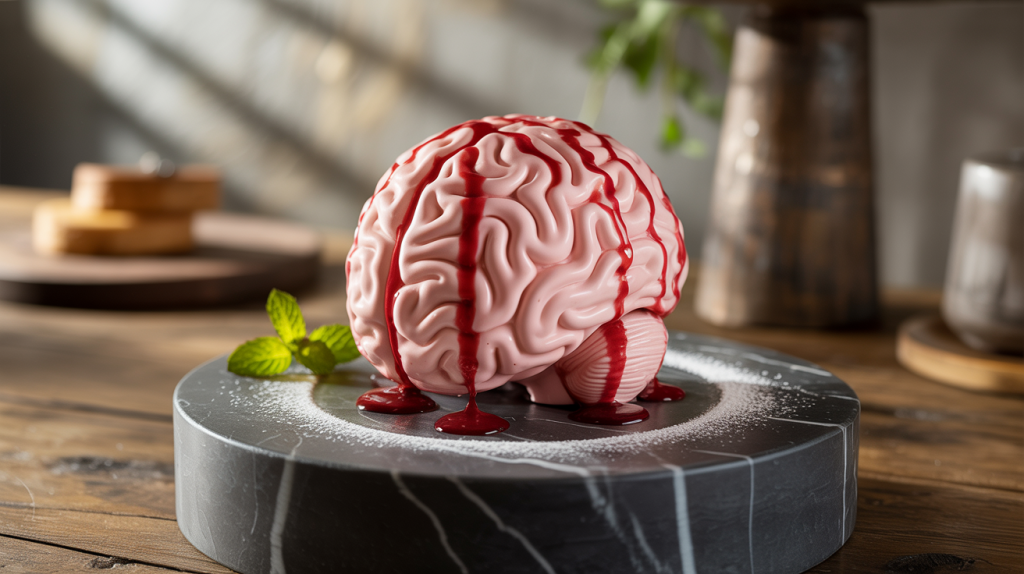 La cocina también es creatividad, juego y diversión. Y este postre lo demuestra de principio a fin. Una panna cotta gigante de cerebro tembloroso no solo es deliciosa, también es una experiencia: desde el momento en que la desmoldas y tiembla como un auténtico cerebro, hasta la primera cucharada cremosa que se derrite en la boca.