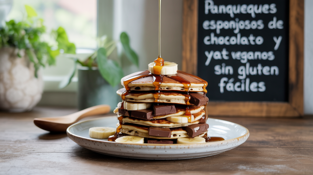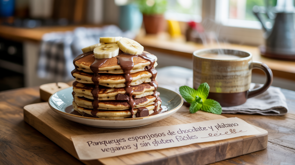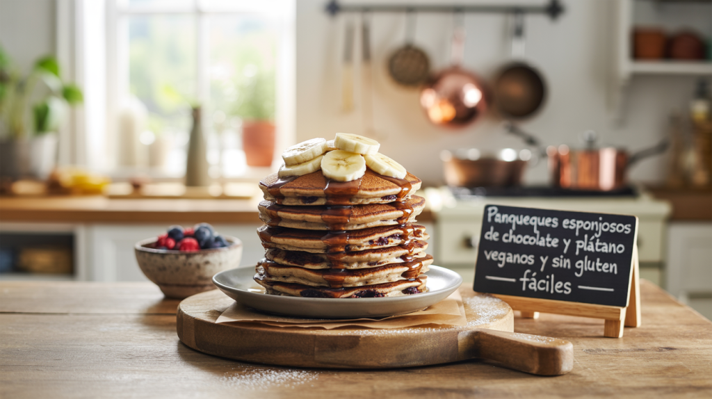 ¿Hay algo más reconfortante que despertarse un domingo con el aroma de unos panqueques esponjosos de chocolate y plátano, veganos y sin gluten? Te lo digo de corazón: esta receta no solo es un desayuno, es un abrazo en forma de comida. Dulce, ligera, llena de energía y con ese toque casero que enamora desde el primer bocado.